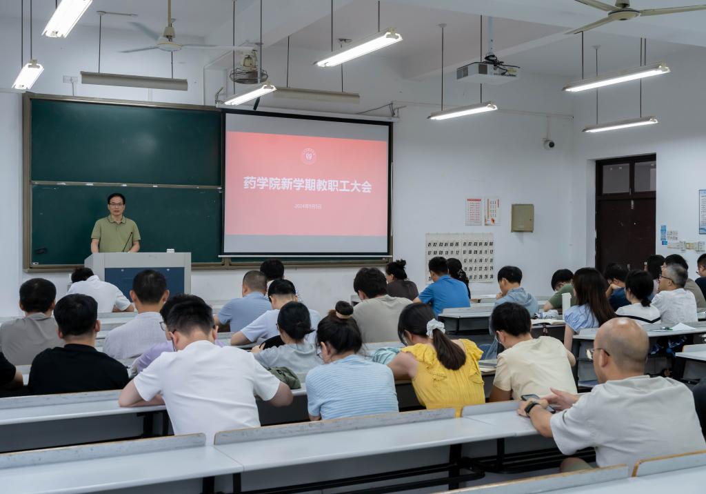 9月5日下午,药学院召开新学期全体教职工大会,部署新学期工作。学院党政班子及全体教职工参加,学院党总支书记谢志昂主持会议。