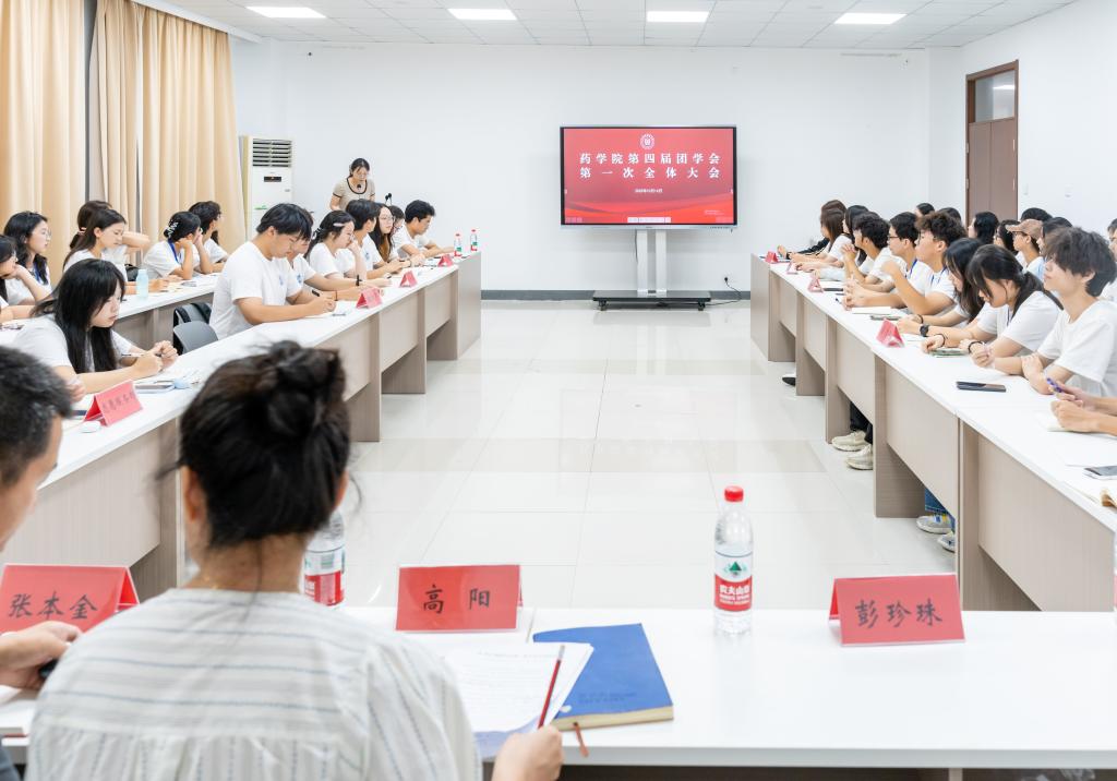 10月16日下午四点五十,药学院第四届团学会第一次全体大会在B-201会议室隆重举行。药学院党总支副书记高阳、学工办主任张本金出席会议;分团委书记彭珍珠主持。第四届团学会全体学生干部参加。