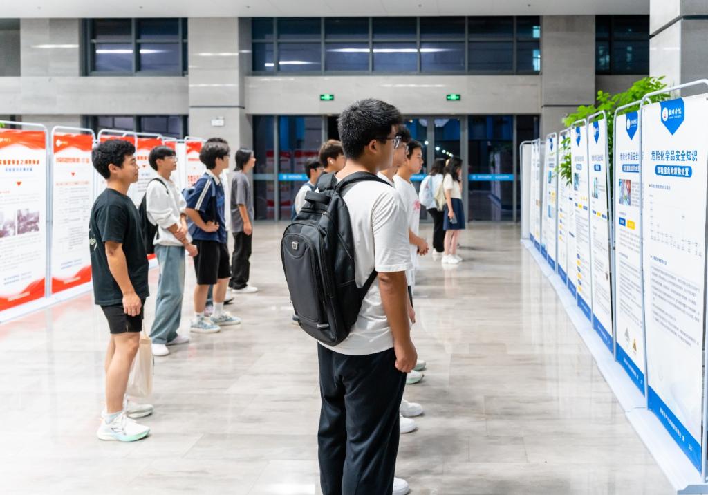 本次活动以丰富的实验室安全知识宣传展板为核心,内容涵盖了实验室管理规章制度、精密仪器的正确操作流程、应急事件的处理标准流程、消防安全常识、电力使用安全规范以及急救知识等多个维度。2025级新生以班级集体形式积极参与,指导老师通过详尽讲解,揭示了实验室中潜在的各类风险源(如化学品、废弃物处理、水电安全、机械设备及辐射等)及其防范策略,并引用众多实验室安全案例进行警示教育,旨在全方位、深入地提升学生们对实验室安全相关知识与技能的掌握程度,切实增强他们的应急处理能力,进而有效压缩安全事故的发生空间。