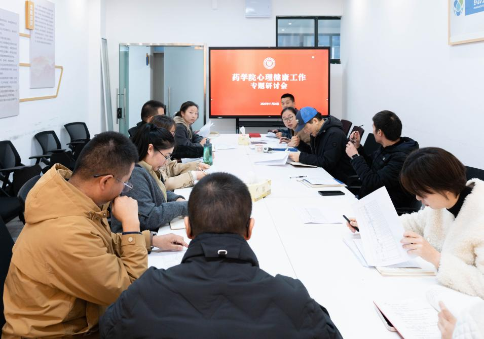 高阳从学生学习焦虑、自我认知偏差、就业迷茫等角度,汇报了药学院2025年下半年学生心理健康教育整体情况及相关举措。参会人员还围绕重点学生重点案例开展深入交流与探讨。