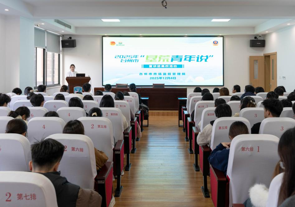 宣讲中,椒江区市场监管局干部万祖馨结合基层实践,以《我在大陈望市监》为题解读垦荒精神核心内涵,展现基层工作者的使命担当;省级药品检查员陈江辉、台州市选调生邱禹迪、市食品药品检验研究院科研人员鲍冕,分别从医药行业发展、职业选择与基层担当、专业素养提升等维度,分享实践经验与成长指引;台州市市场监管局办公室干部陶佳音则针对考公热点,分享跨专业备考实操技巧,为学子答疑解惑。