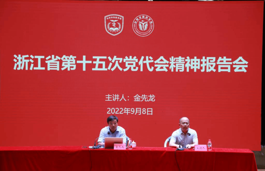 金先龙从笃行“两个维护”的政治宣言、践行“伟大思想”的行动纲领、锚定“两个先行”的历史航标等方面,带领师生认识省第十五次党代会的里程碑意义;并结合师生切身感知的案例,以全面总结成就,阐明“8个方面规律性认识”、强化政治自觉,高举新时代新征程指路明灯、把握时代主题,擘画“两个先行”蓝图路径、守好“红色根脉”,强化“三个方面”党建要求为纲,阐释省第十五次党代会精神的深刻内涵;并从讲政治,悟思想、领会精神,明确使命、结合实际,狠抓落实等方面,讲述贯彻落实省第十五次党代会精神的行动举措。辅导报告带领广大师生党员深刻领会省第十五次党代会精神,勉励师生唯实唯新,知行合一,在共同富裕和现代化征程中、在守护人民生命健康事业中找准发展定位,贡献台院力量。