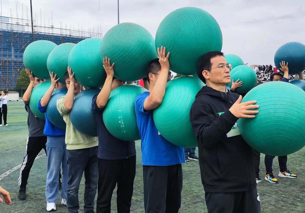 学生运动员在操场上摩拳擦掌,教师运动员同样让人眼前一亮。老师们有着不输于青年人的魄力与激情,在操场的绿茵上挥洒他们的汗水,在趣味运动上大放异彩,拿下并列第一的好成绩。而其他像百舸争流,砥砺前行,扭转乾坤等游戏,学院教师们同样齐心协力,全力拼搏,赛出佳绩。在百舸争流、砥砺前行、运转乾坤等趣味项目中获得了优异的成绩,展现出了智慧与热情并重的师者形象。