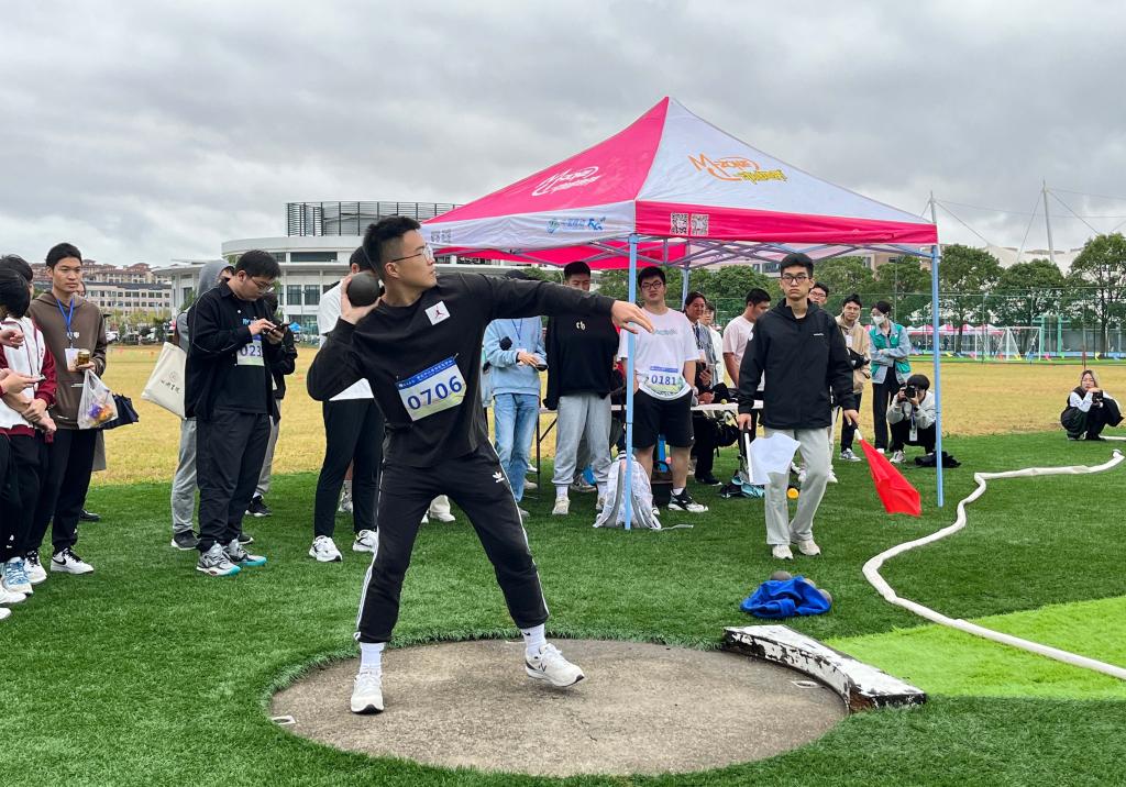 在一片彩旗飘扬的愉悦氛围中,药学院共56名学生运动员,16名教工运动员参赛。运动员们以高昂的斗志认真对待每一场比赛,以满腔的热血迎接每一个挑战,势必在每一场比赛中都展示自我、全力以赴。赛场上,有王郦雨辰同学荣获铅球第四名,方鹏同学荣获标枪第六名,徐志俊同学荣获铅球第八名,蒋思晨同学荣获铁饼第八名。运动精神不仅仅体现在个人体育项目上,学生的集体趣味运动也充分展示出团结拼搏的乐观精神。