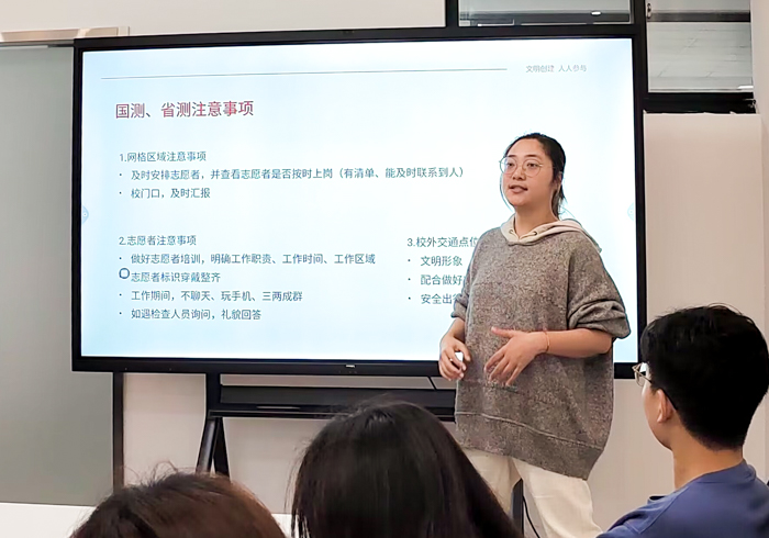 培训会上,林丽围绕“文明创建的意义”“文明创建的工作要点”“文明创建的注意事项”等方面展开讲解。她表示,全国文明城市是“重要窗口”最直接生动的展示,也是台州最靓丽的金名片。台州学院作为台州唯一的地方本科高校,积极主动参与文明创建是每一位台州学院人义不容辞的责任和义务。她希望每位志愿者能深刻认识文明创建的重要意义,以“文明创建 人人参与”的主人翁的精神态度投入到文明创建组织,为台州市文明城市建设添砖加瓦。