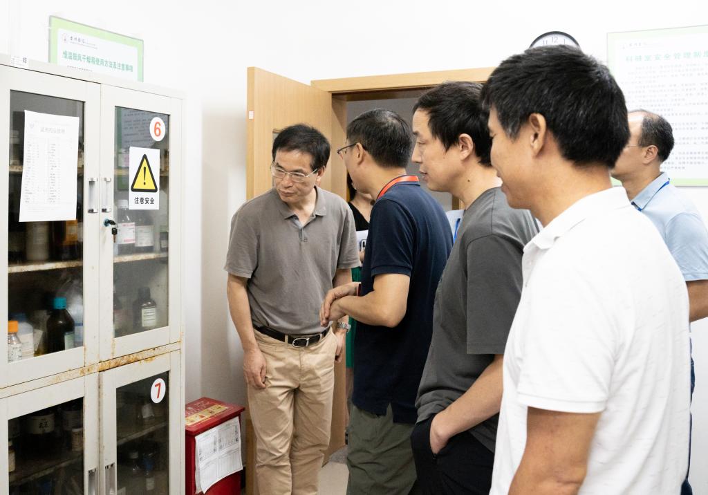 为进一步加强校园安全管理工作,确保亚运国庆期间校园安全稳定,药学院领导班子陪同校国资处、保卫处等相关部门负责人,深入实验室、学生公寓等重点场所开展亚运国庆期间学院安全检查和隐患排查。
