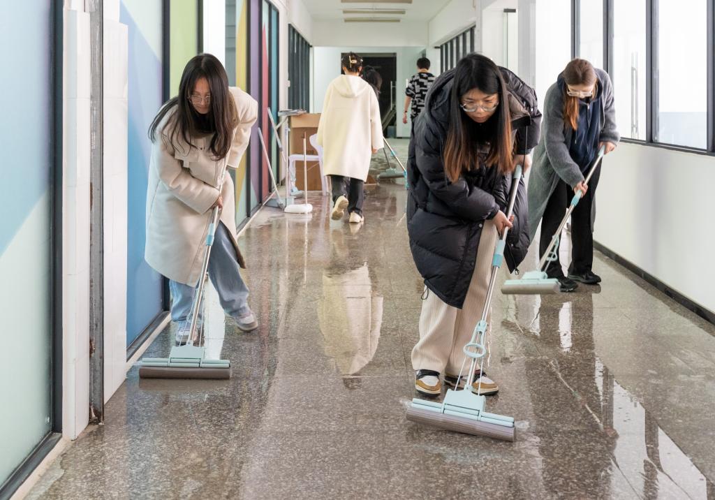 活动过程中,志愿者们充分展现了团结协作、无私奉献的精神风貌。他们手持扫把、抹布等工具,认真清洁教室里的每一个角落,不放过任何一块玻璃、一个桌面。在大家的共同努力下,原本灰尘满满的功能室,变得干净整洁,焕然一新,为学院师生提供了一个明亮、干净的交流和自习环境。