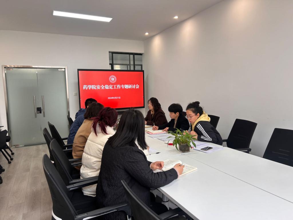 为进一步加强学院安全稳定工作,促进学生健康成长成才。3月21日上午,药学院召开安全稳定工作专题研讨部署会。会议由学院党总支书记张梅芬主持,党总支副书记高阳、副院长李娜及全体辅导员、教务员参加。