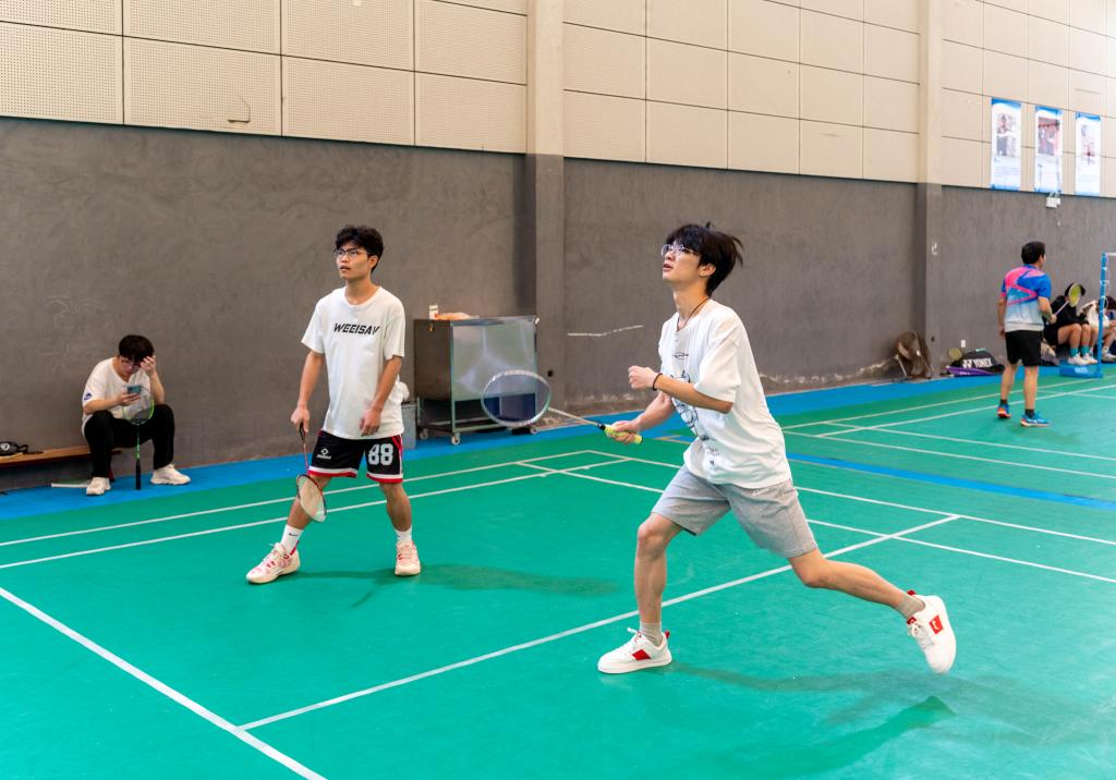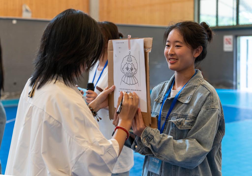 此次心理趣味运动会内容丰富、形式新颖,共设置“趣味羽毛球”、“乒乓大作战”、“蒙眼涂色”、“你划我猜”和“emoji猜成语”五项集体项目。同学们跨班组队,每支队伍由三男三女组成,共同挑战。活动现场,同学们热情高涨,每个项目都充满了欢声笑语。在“趣味羽毛球”、“乒乓大作战”环节中,选手们身手敏捷,双方你来我往,比分紧咬,过程扣人心弦,场边欢呼不断;“蒙眼涂色”环节中,队员们通过默契配合,轮流在方格里涂色获取高分;“你划我猜”项目则考验了队员们的默契程度和反应速度;“emoji猜成语”环节中,表演者通过丰富搞怪的表情、夸张有趣的肢体语言来展示与成语相关的部分字或意思,表演者的表演不时引来阵阵笑声,现场气氛轻松愉快。