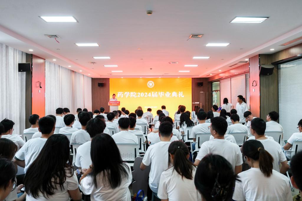 6月18日下午,药学院于图书馆七楼隆重举行2024届毕业典礼。院长胡金锋、院党总支书记张梅芬、副院长李娜等学院领导,以及辅导员、毕业班班主任出席了典礼,与毕业生们共同见证这一难忘的时刻。典礼由学院党总支副书记高阳主持。