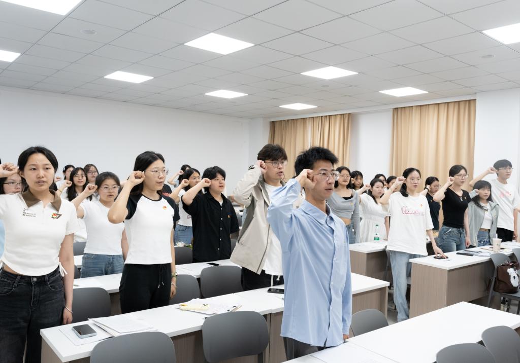 全体毕业生党员整齐列队,面向鲜艳的党旗,庄严地举起右手,重温入党誓词。“我志愿加入中国共产党,拥护党的纲领,遵守党的章程……”铿锵有力的誓言在活动现场回荡,每一个字都饱含着党员们对党的忠诚与热爱,每一句话都彰显着他们为共产主义事业奋斗终身的坚定决心。通过重温入党誓词,毕业生党员们再次深刻感受到了入党时的庄严承诺和肩负的责任使命,进一步坚定了理想信念,增强了党性观念。