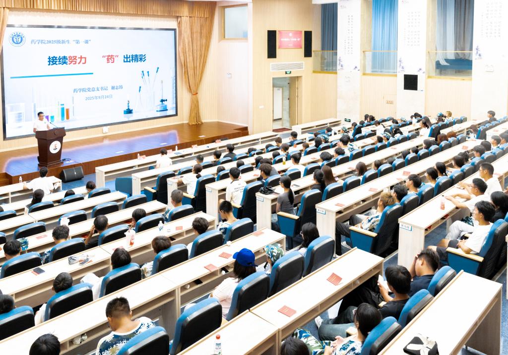 谢志昂在题为《接续努力 “药”出精彩》课上,从“把握时代脉搏”“融入学院发展”“成就精彩人生”三个方面,为新生上了一堂生动的开学第一课,叮嘱新生认清历史方位与青年担当,在国家战略与区域需求中定位人生坐标,以目标、精神与习惯塑造卓越自我,成为有家国情怀、垦荒之志、扎实本领的新时代大学生,让青春闪“药”未来。