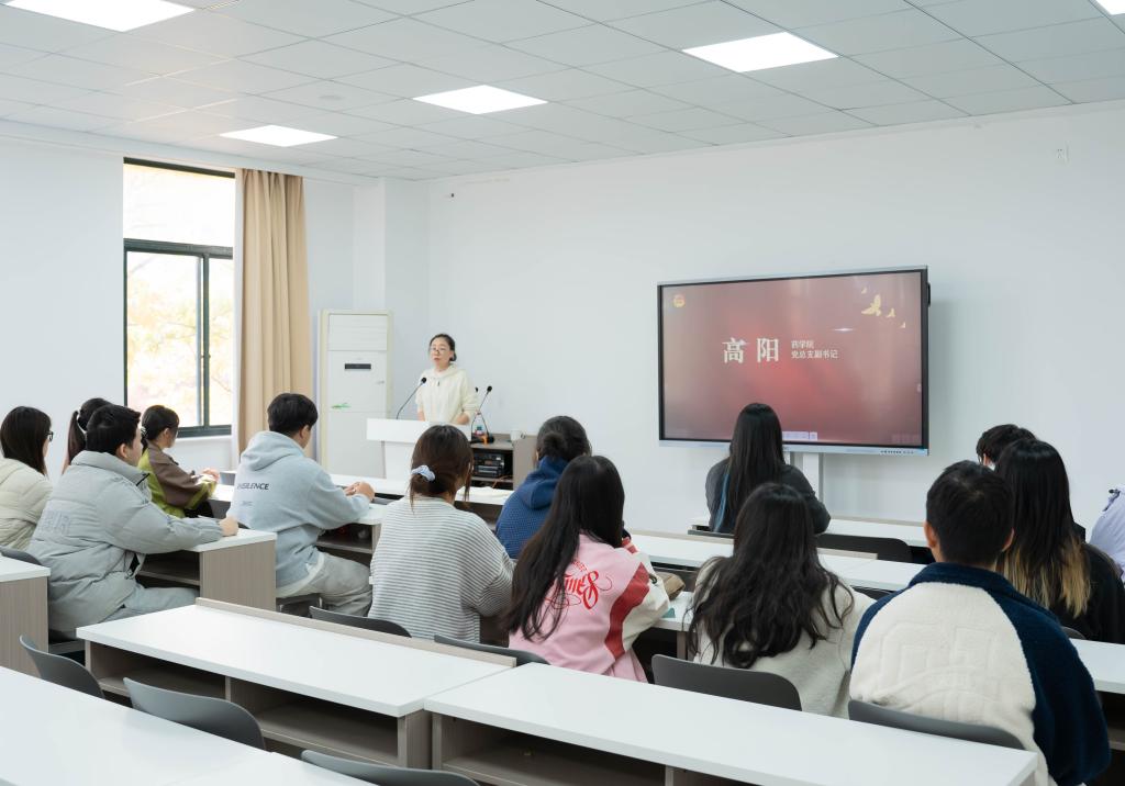 高阳在讲话中向新团员表示祝贺,向辛勤付出的师生表示感谢。她指出,青年团员正值青春年华,是药学院的新鲜血液,更是医药事业未来的建设者。希望大家坚定理想信念,做有方向的青年;锤炼专业本领,做有本领的青年;践行团员使命,做有担当的青年。新团员要以入团为契机,在青春的赛道上奋力奔跑,在药学专业的领域里不断探索,用青春和汗水书写属于自己的精彩篇章,为医药事业发展、为健康中国建设贡献青年力量。