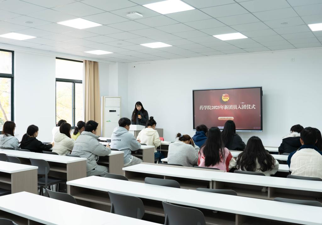 12月18日下午,药学院在B-201举行2025年下半年新团员入团仪式。学院党总支副书记高阳出席。学院分团委书记彭珍珠主持;全体新团员、老团员代表参加。