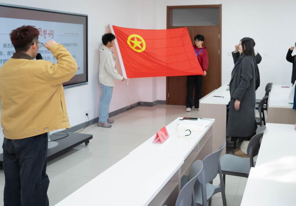 为新团员颁发团章、佩戴团徽