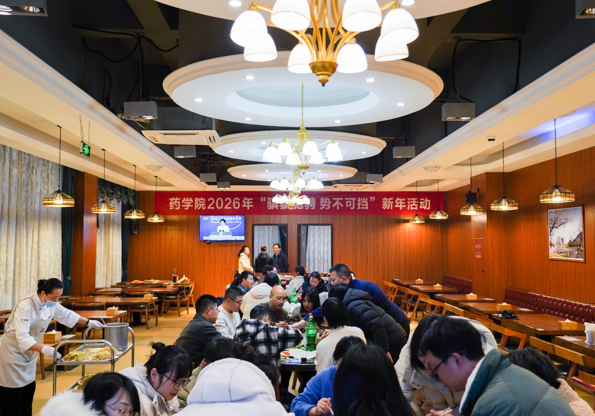 1月8日晚,药学院教职工在学校教工餐厅齐聚一堂,开展辞旧迎新包食饼筒活动。